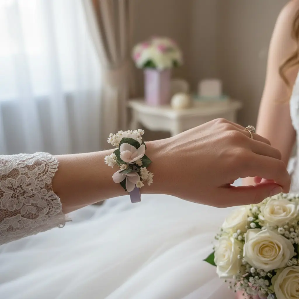 Un bracelet demoiselle d’honneur en fleurs stabilisées